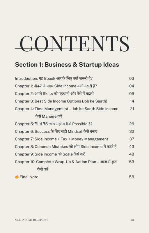 Side Income Blueprint is written in simple Hinglish and is designed especially for beginners. You do not need any prior business experience, technical skills, or investment knowledge to start.